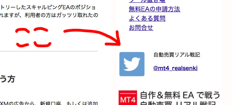2018/8/28 2019/10/17 ツイッター始めました ご存知の方もいらしゃるかもしれませんが、最近ツイッターなるものを始めました。 ちょっと恥ずかしいのですが興味のある方は覗いてみてください。 @mt4_realsenki サイドバーにリンクをつけてみましたのでどうぞ >>MT4無料EAトップページへ戻る