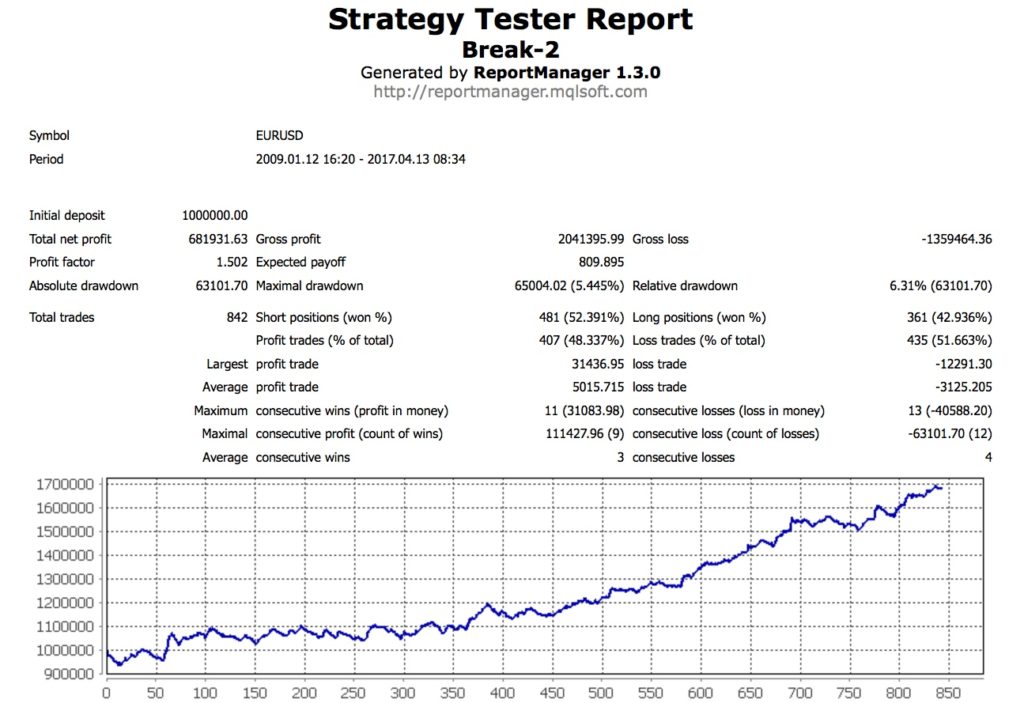 今回のこのEA、「Break-2」は現在のブレイクアウトEA「Break-1」との違いは、運用する場合のリスクが低いことにあります。