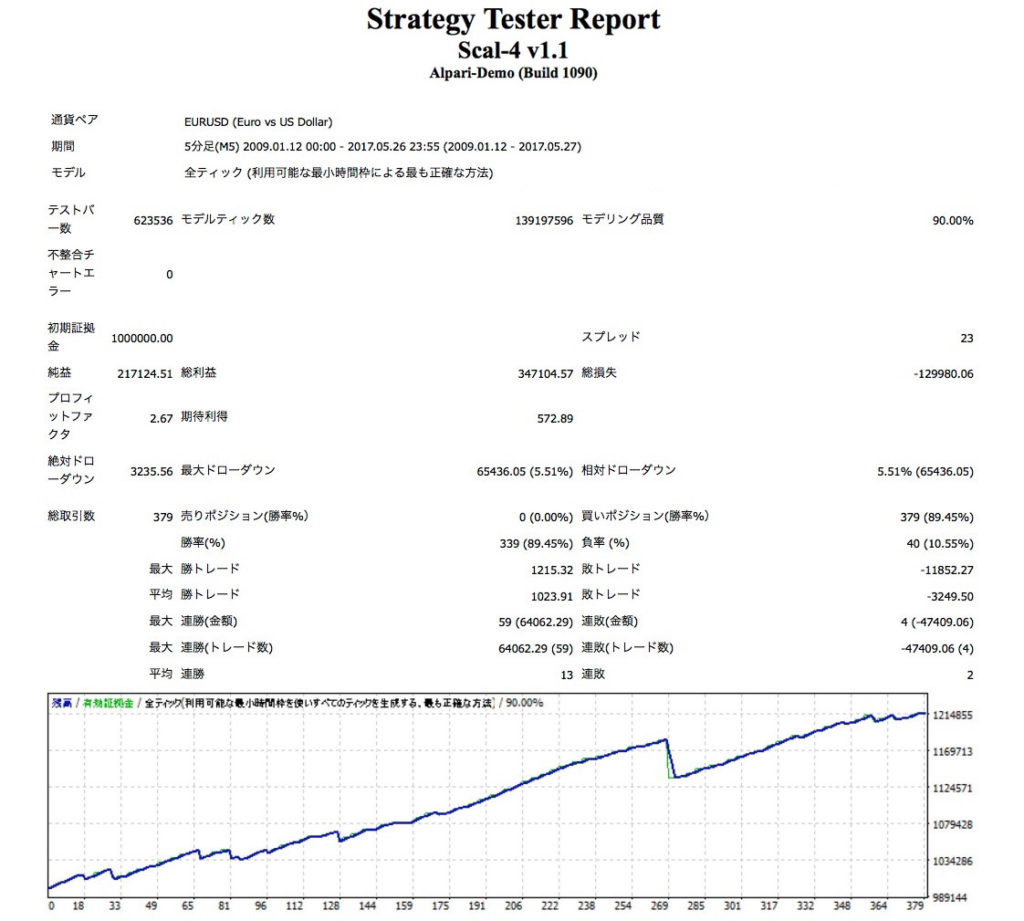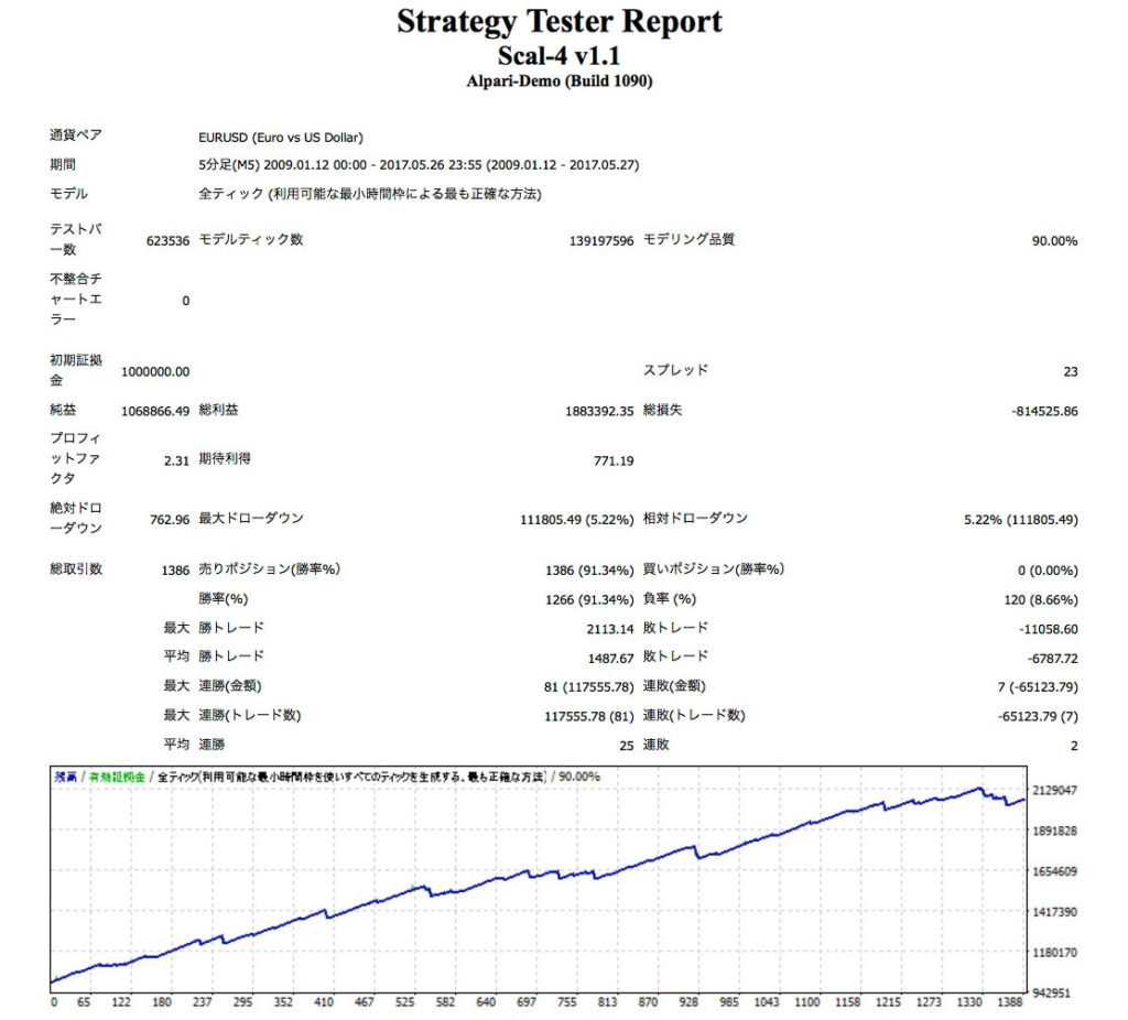 ちなみに、合成した2つのセットは、どちらも0.1ロット(同一ロット)でのテストです。ロットの割合を少し調整すればもう少しパフォーマンスを伸ばせると思います。