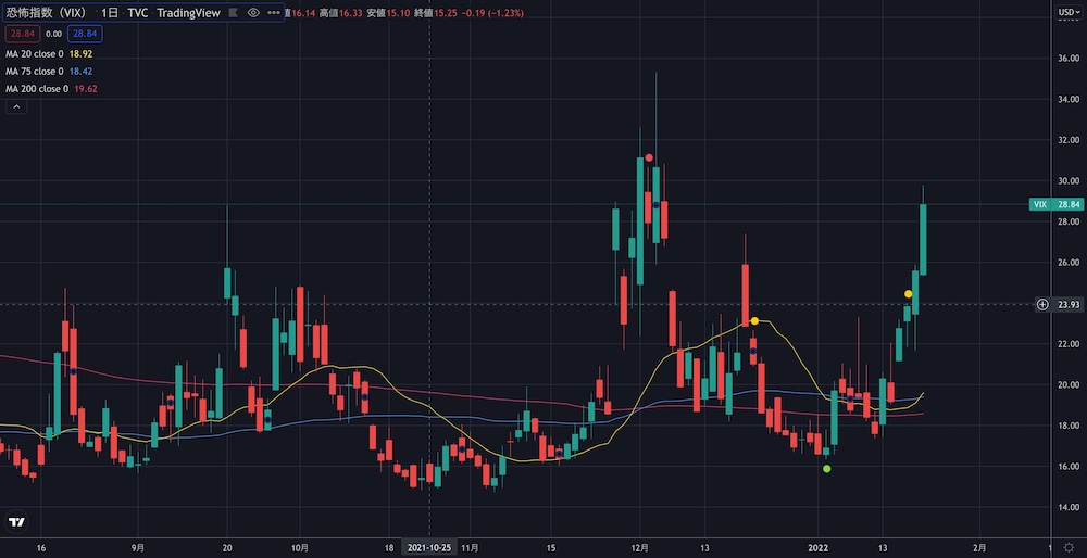 VIX(恐怖指数)も跳ね上がっていることから、今週は無理せずに慎重に行こうと思います。
