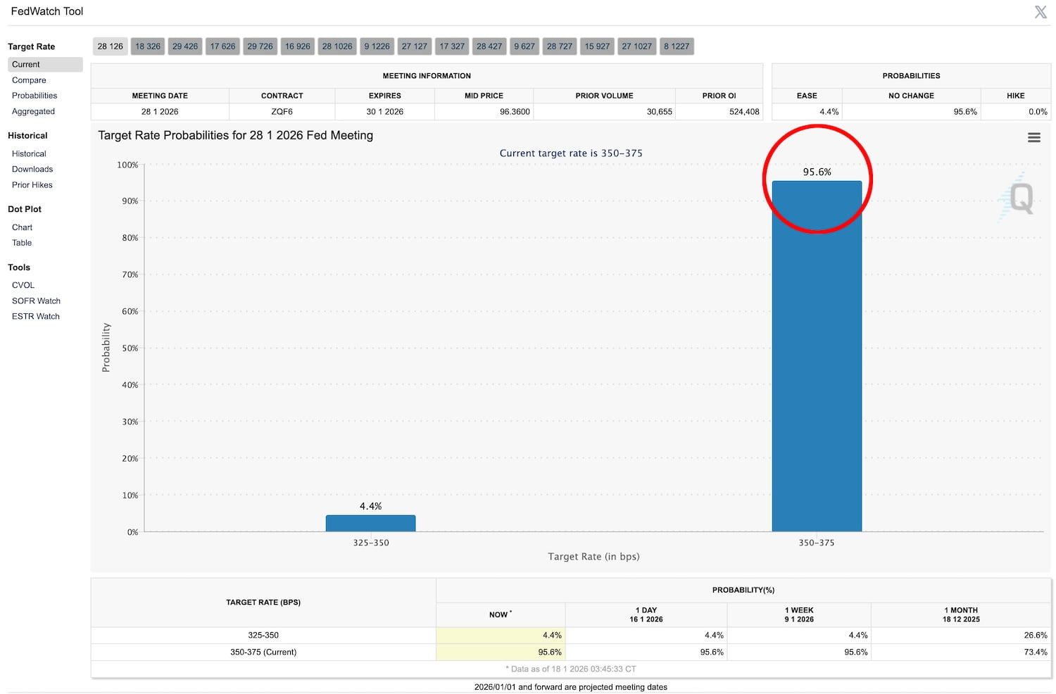 ただ、28日のFOMCを控えて、金融政策での市場のコンセンサスはこの記事を書いている時点では先週と変わっておらず、現状据え置きが95.6%とほぼ織り込まれている状態を維持しています🤔
