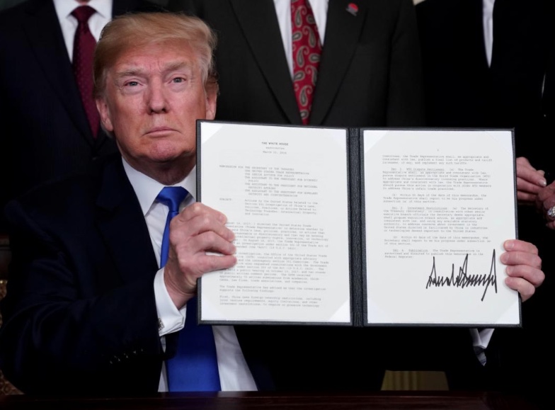 さらにトランプ大統領は、中国による知的財産権侵害への制裁措置に関する大統領令に署名し、ライトハイザー米通商代表部(USTR)代表に500億ドル相当以上の中国製品への関税賦課を指示したそうです。
