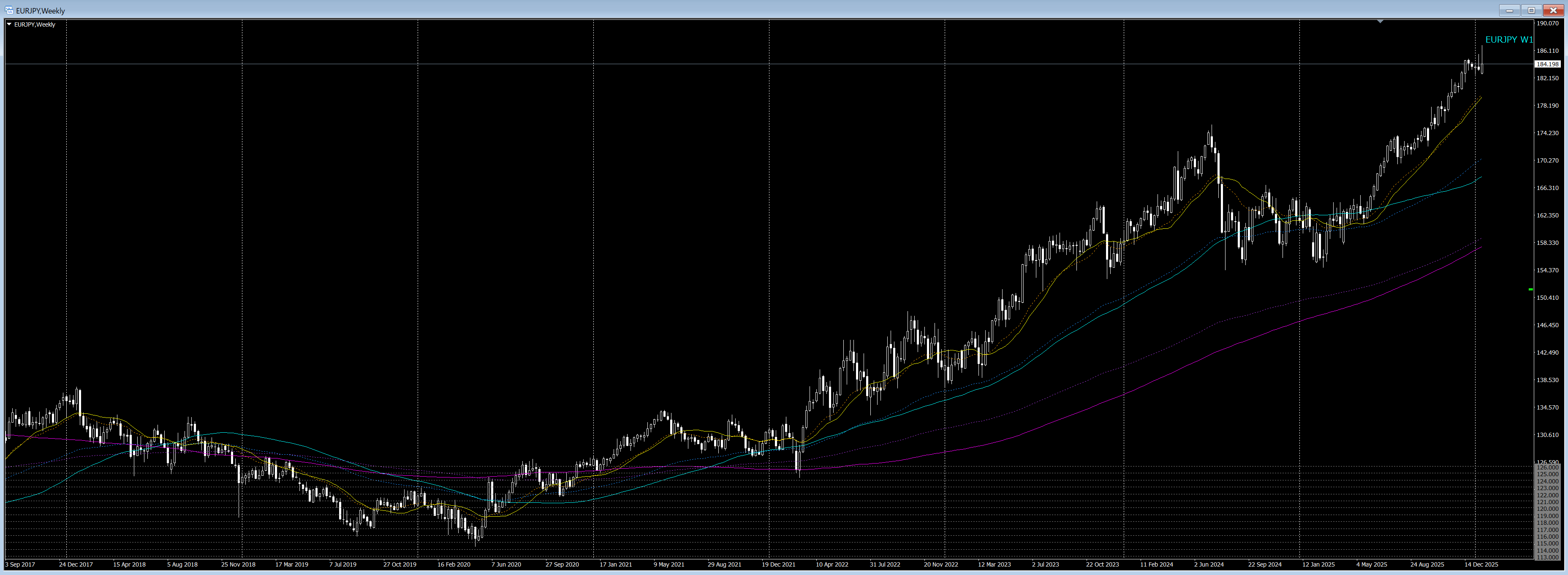 EURJPYやGBPJPYを週足とか月足とかで表示させてみてください…💦、対ユーロでは市場最安値更新中です💦(これ、結構ヤバくない?🧐)