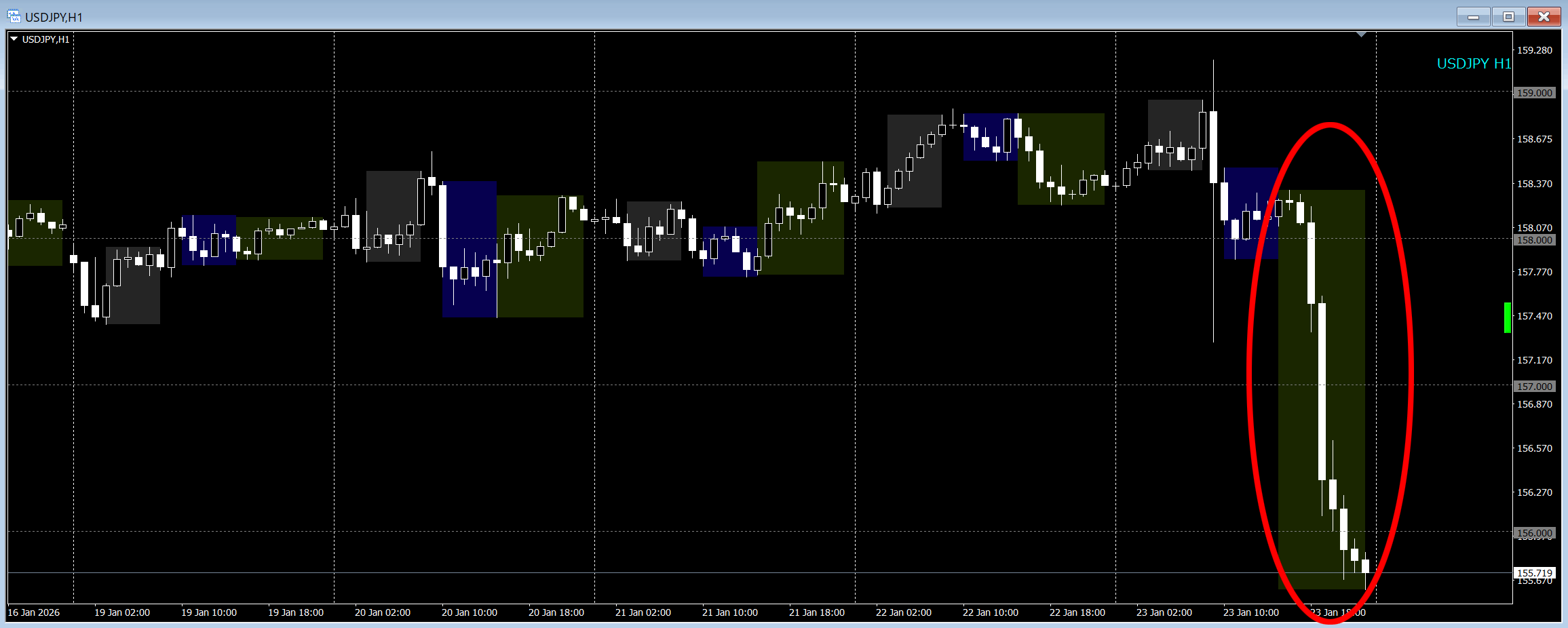 先週は、前々週末の片山財務相の閣議後の会見で「〜あらゆる手段で断固たる処置を…」といった円売りを牽制発言もあり158円台前半での越境となりましたが、日銀会合以外には特別目立つような指標やイベントは少なく、前半〜中盤はどちらかといえば、米欧のグリーンランド問題と衆院解散総選挙絡みの政治要因がメインの動きだったように思います🧐